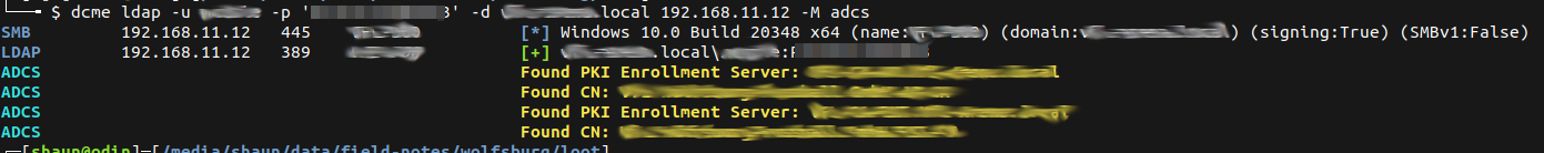 Once connected to the VPN I used CrackMapExec (CME) to query Active Directory and enumerate Active Directory Certificate Services (ADCS) to see if any certificate authorities (CA) are available with the aim of exploiting a vulnerable template.